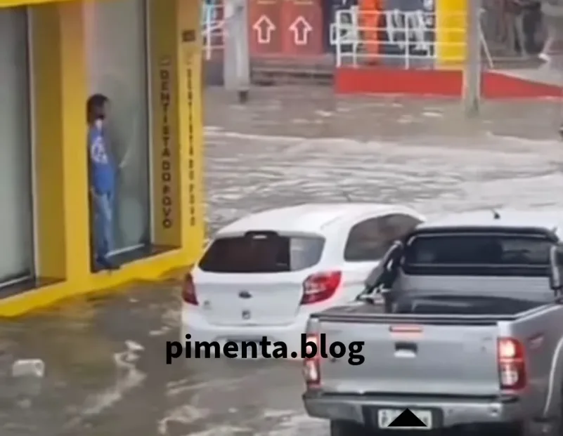 A água chegou a invadir agência da Caixa Econômica Federal da Cinquentenário que fica próximo à Praça José Almeida Alcântara (Jardim do Ó). As Avenidas Aziz Maron e Mário Padre e Praça Pastor Hélio Lourenço, no Góes Calmon, também foram tomadas pela água.