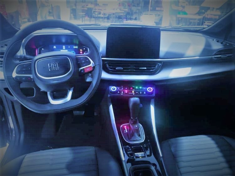 O teto na cor preta, acabamentos que imitam aço escovado, itens em black piano e revestimentos em 3D, dão um ar de sofisticação. A Fiat deixou vários mimos espelhados pelo carro, como foi conhecido no Jeep Renegade. A exemplo, um desenho do Fastback no grafismo do para-brisa.