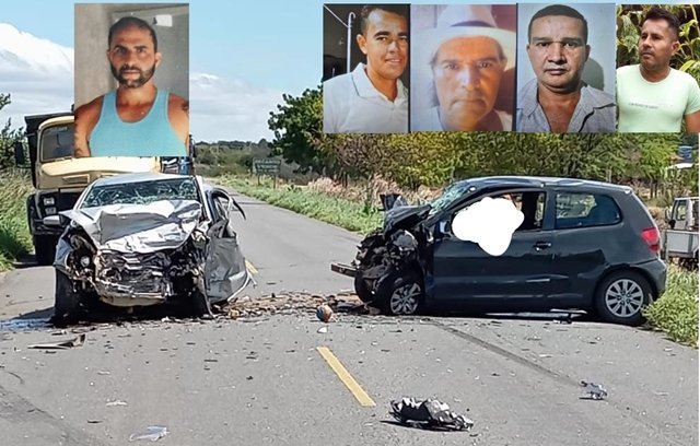 Alex Mendes de Oliveira, de 36 anos, dirigia um Volkswagen Voyage, que bateu de frente com o Volkswagen Fox em que viajavam o motorista, Jonas da Silva Marques, de 34 anos; o pai dele, Obaldo Silva Marques, de 62 anos; e dois irmãos de Obaldo, Ivalter da Silva Marques, de 51 anos, e Flávio Menezes da Silva, de 52 anos.