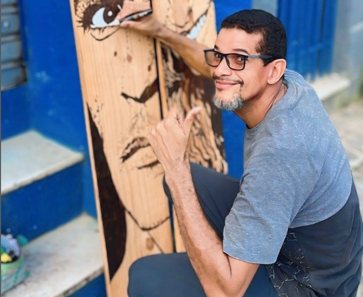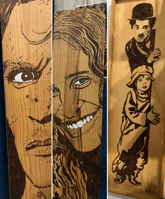 A morte trágica e repentina de Luciano Sabino Maciel causou profunda consternação entre familiares, amigos e colegas do mundo das artes. Homem e artista de humor vivaz, ele deu vida ao palhaço Pipoka, persona que também assinava suas obras de pirogravura e grafite, algumas delas expostas n’O Badauê, como as retratadas na montagem acima.