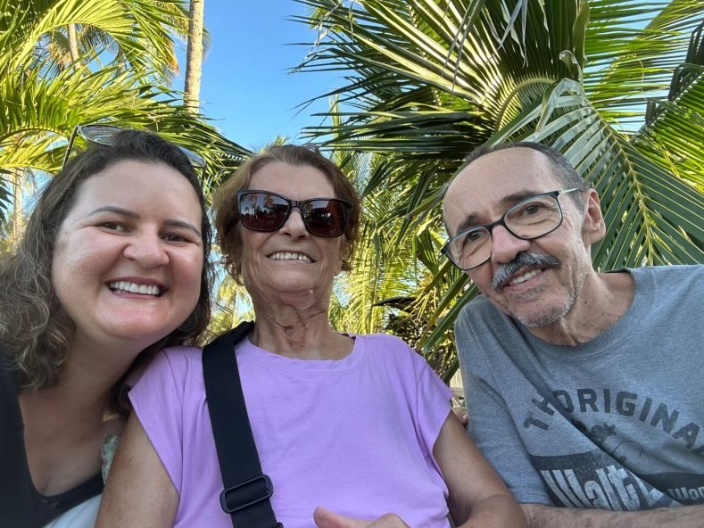 Filha e marido se revezam nos cuidados, além do acompanhamento de profissionais de saúde. “Meu pai é um guerreiro e superapaixonado pela minha mãe. É um amor de 46 anos”, disse Risia sobre a relação de Geraldo e Maria. A irmã de Risia, Rosana Keila, mora no Espírito Santo, mas fez o possível para estar com a mãe em momentos decisivos.