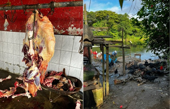 Além das irregularidades sanitárias, a equipe de fiscalização flagrou o descarte inadequado de resíduos provenientes dos abates às margens de um curso d’água. O responsável foi detido em flagrante pelas autoridades e conduzido à delegacia onde foi indiciado por crime ambiental.