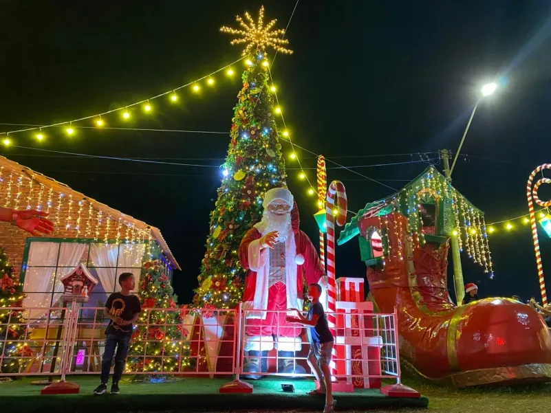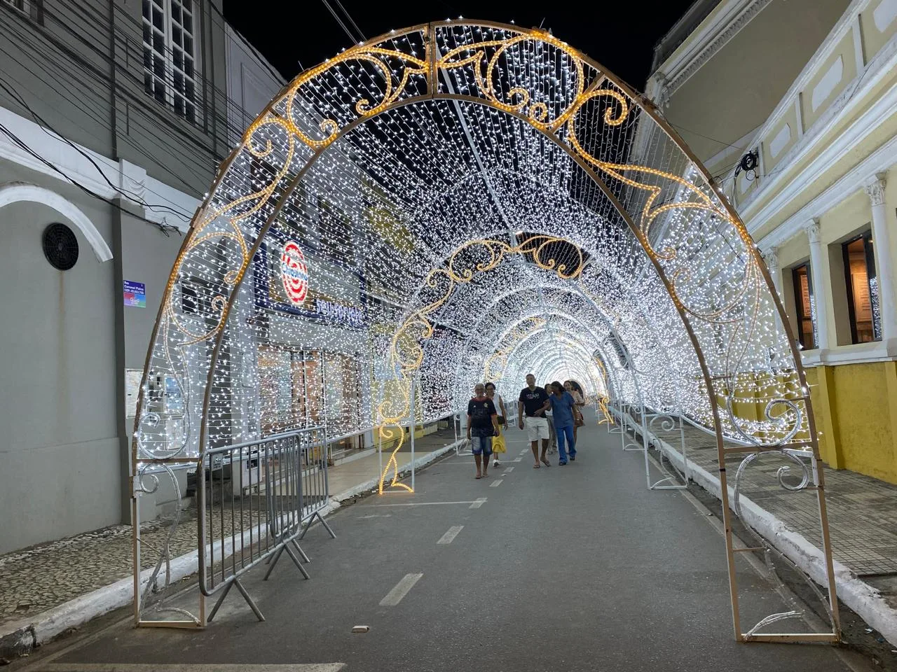 Perto dali, na Rua Coronel Paiva, um túnel luminoso convida quem chega à Praça Dom Eduardo, em frente à Catedral de São Sebastião, a caminhar até a Dois de Julho, que concentra a maior parte da decoração do Natal Ilhéus 2025, inaugurada há cinco dias, pela Prefeitura.