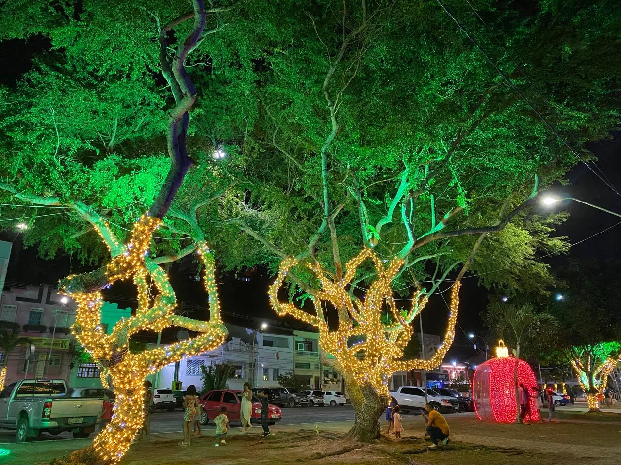A decoração é mais tímida na Rua Eustáquio Bastos, apenas com enfeites nos postes. Mas, ao final dela, na Praça Cairu, uma grande árvore iluminada devolve o clima natalino à cidade. Já na Avenida Soares Lopes, na área onde é construído o Food Park, outra árvore de Natal foi instalada, embora, nesta quarta-feira, as luzes ainda estivessem apagadas.