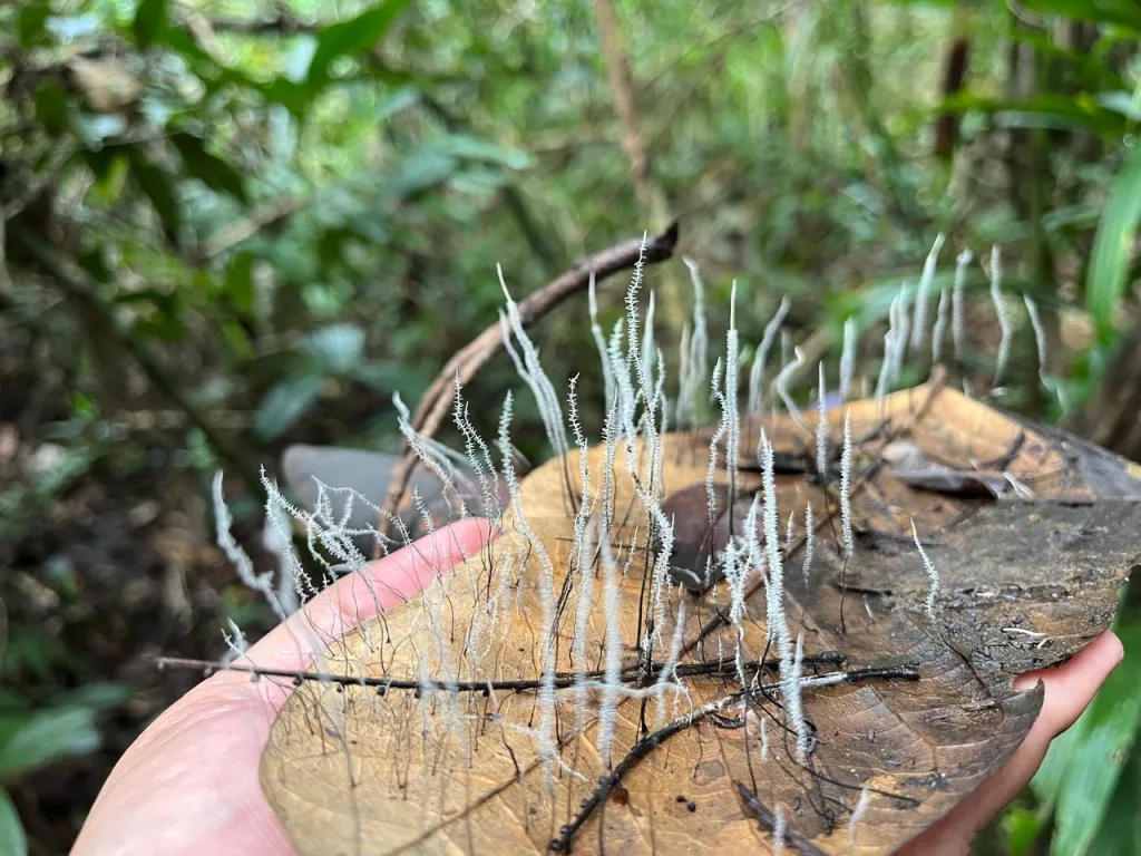 Além do PIMENTA e dos guias, o grupo da incursão incluiu dois seguranças da empresa que administra o Parque e cinco visitantes. A busca pelos cogumelos foi minuciosa e bem-sucedida. No percurso, encontramos alguns exemplares do Cordyceps acoplados a insetos, sobretudo formigas.