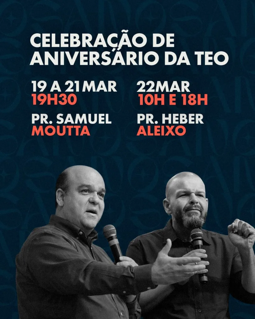 No domingo (22), as celebrações ganham dois horários, às 10h e às 18h, com conferências com o pastor Héber Aleixo e apresentações dos dois corais.
